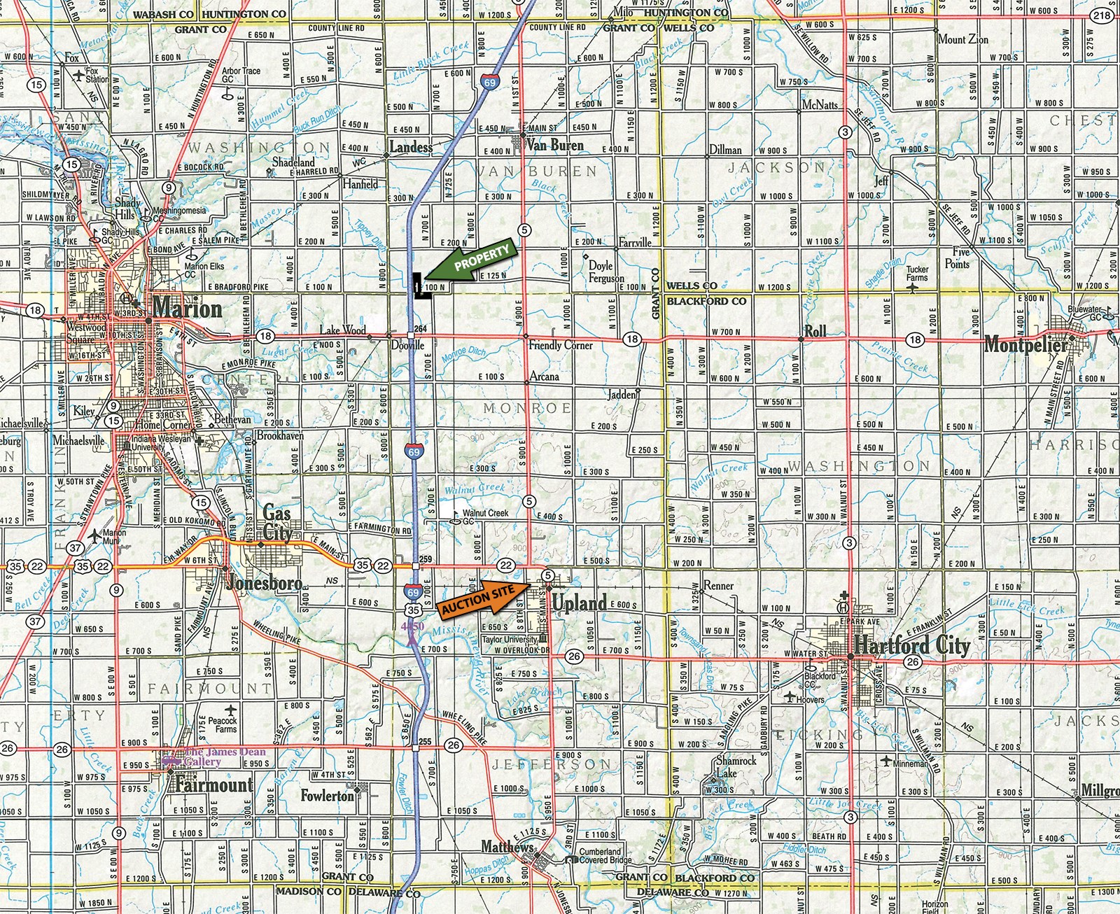 From the intersection of I-69 & State Road 18, travel East on State Road 18 one-half mile to CR 700E, then North 1 mile to property.