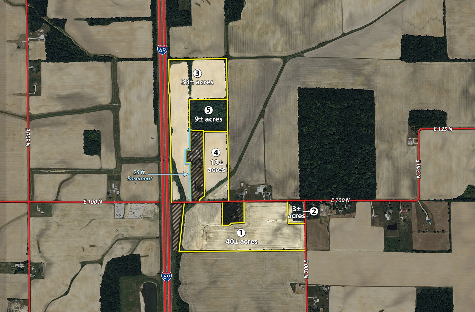 Tract 2: 3± ac with frontage on CR 100N and CR 700E.