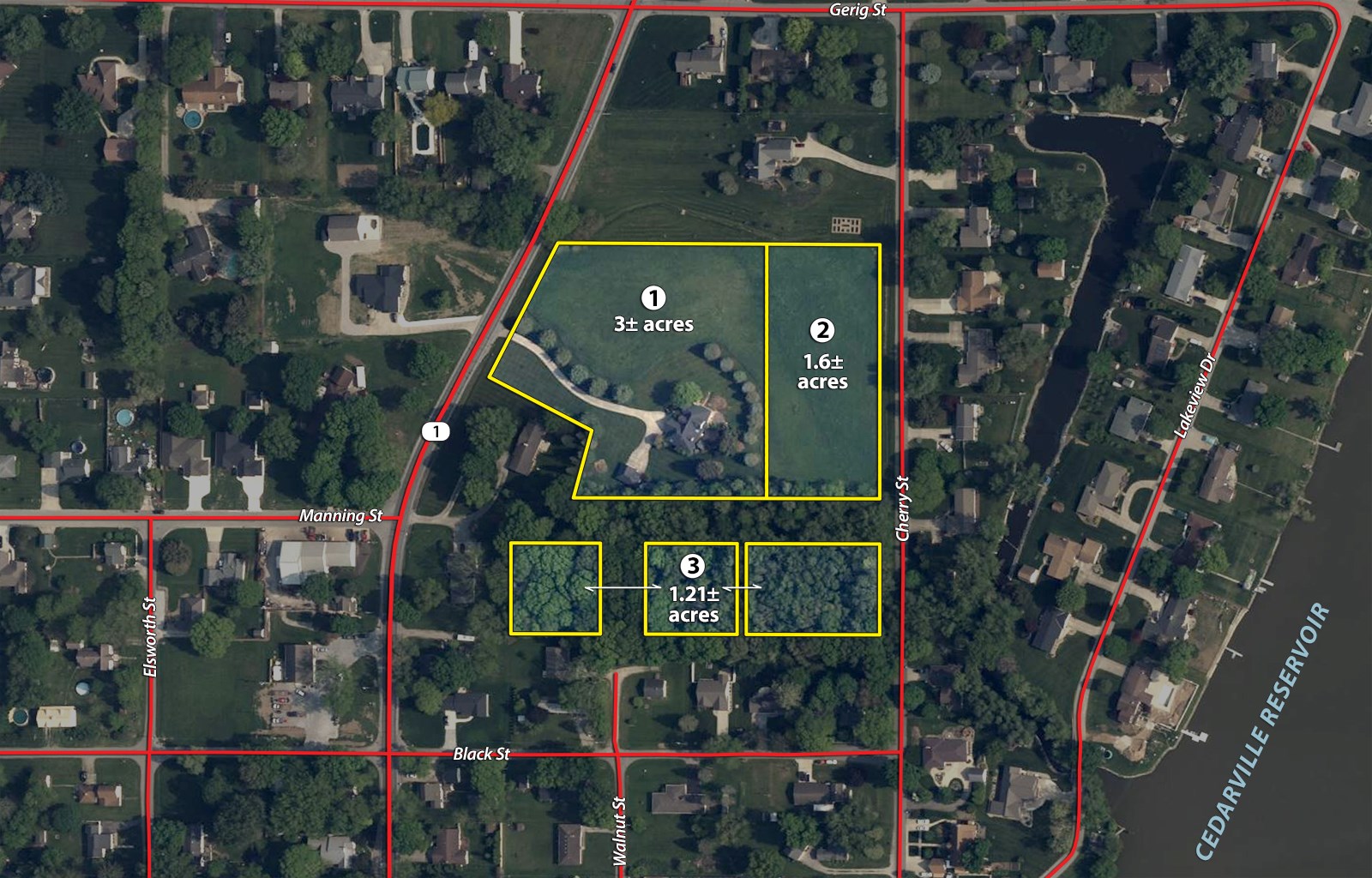 Tract 3: 1.2± ac (6) SIX City Lots of Approximately 0.22 Acre Each, comprising nearly 1.2 acres total. The lots have nearly 140 feet of access off Cherry Street and has the potential extension of Walnut Street in between the two west and 4 east lots. All six lots will be offered as one complete tract.