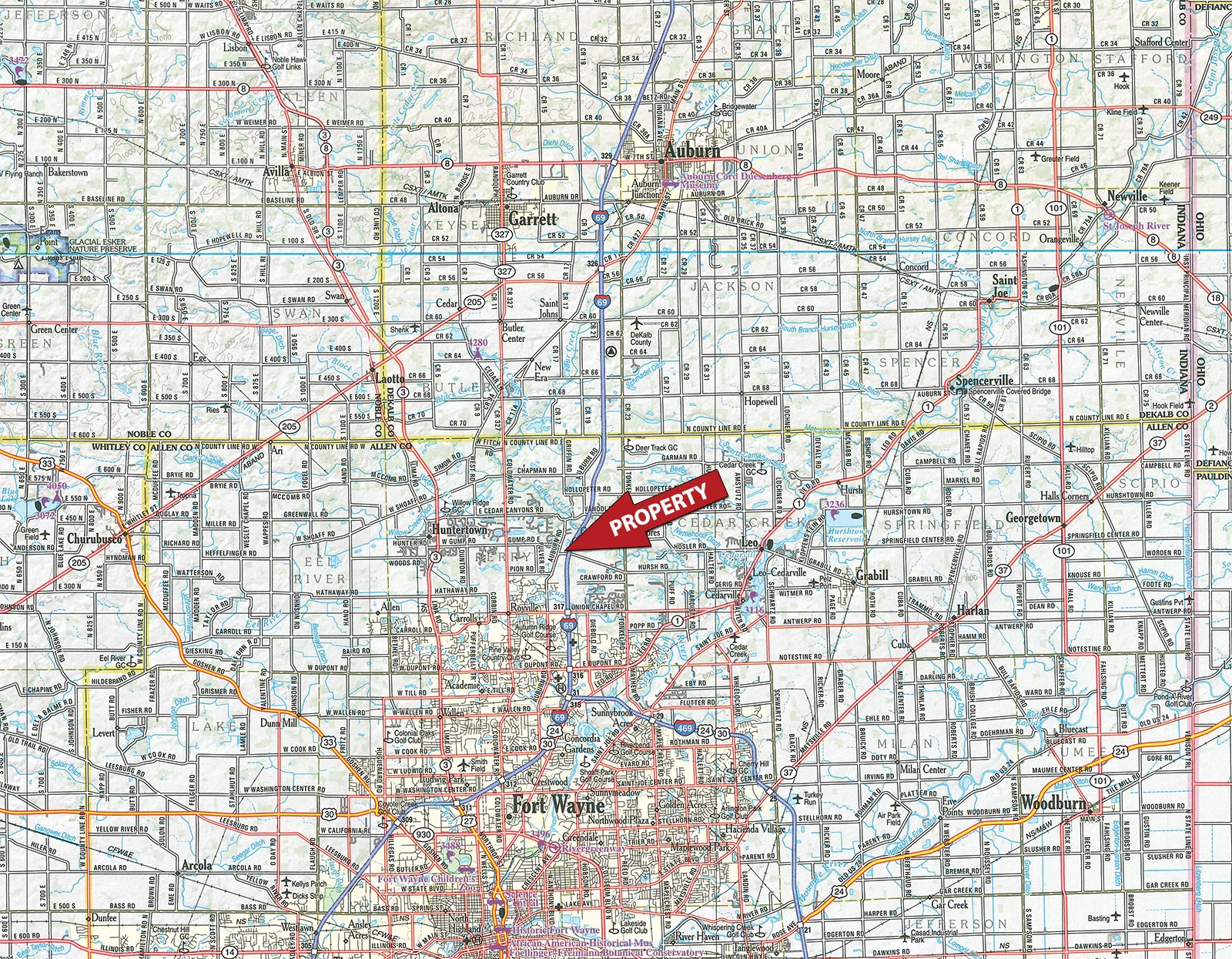 On the Northside of Fort Wayne on I-69 at Union Chaple Rd. Turn West on Union Chaple Rd. 1/2 mile to Auburn Rd. Turn North 1.5 miles to Hursh Rd. Turn East to 3rd drive on the North.