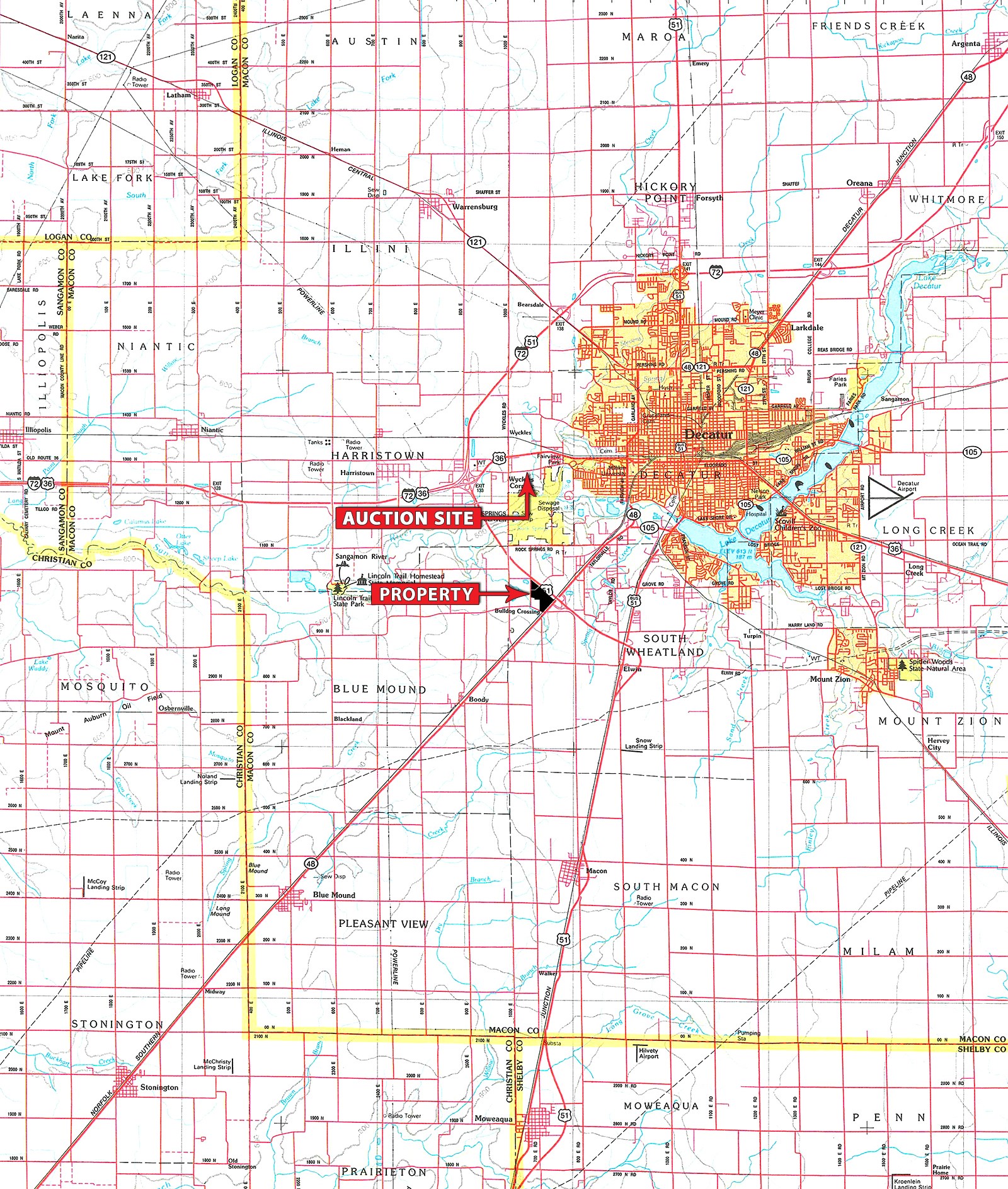 From the interchange of US 51 and IL 48 (S Taylorville Rd) on the Southwest side of Decatur - To Tract 1 Travel Southwest on IL 48 (S Taylorville Rd) for approx. 0.3 miles to Mount Auburn Rd. Turn right on Mount Auburn Rd and cross the railroad tracks and Tract 1 will begin on the right. For Tracts 2-3 Continue on Mount Auburn Rd for 0.3 miles to Crossroads Rd. Turn right (North) on Crossroads Rd and Tract 2 will begin on the right.